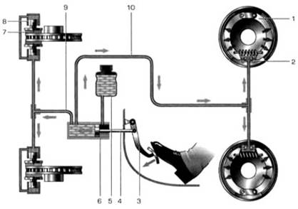 В общем виде тормозная система состоит из тормозных механизмов и их привода.