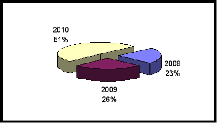 При рассмотрении диаграммы видно, что продажа рыбных консервов в январе 2010г. увеличивается по сравнению с предыдущими аналогичными периодами и опережает их по объему продаж.