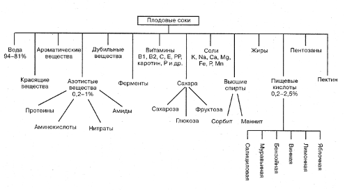 все составные части, растворенные в воде (сахара, кислоты, витамины,
