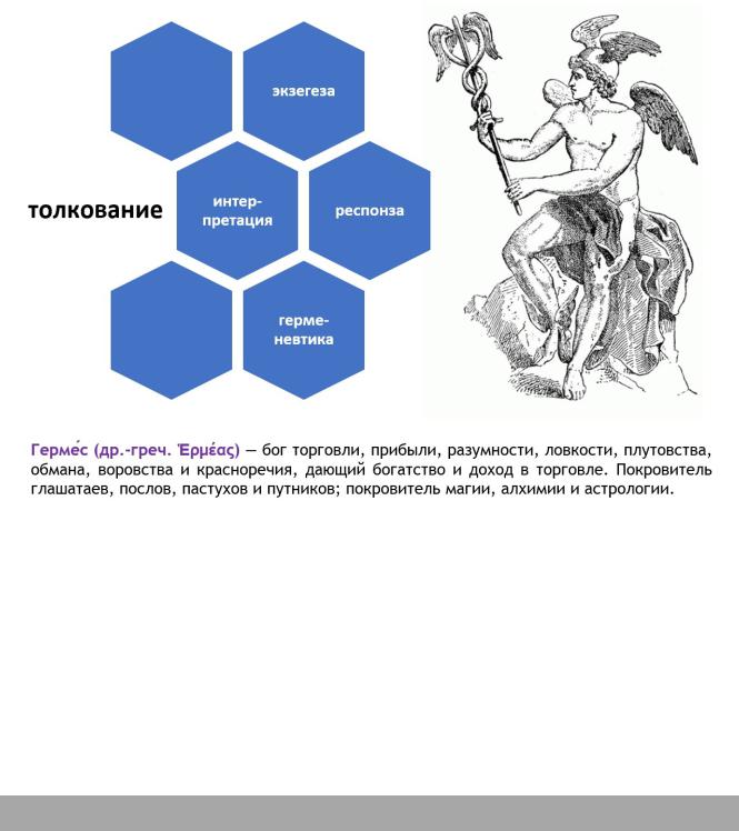 •экзегеза (термин греческого происхождения, широко использовался в античности и средневековье и обозначал толкование пророчеств, сновидений, сакральных текстов, а затем закрепился за раннехристианским толкованием священного писания);