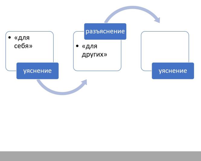 •разъяснение — объяснение, доведение усвоенного содержания «для других».