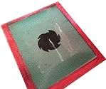 b. Разотрите щеткой слой фотоэмульсии с печатной стороны. Дайте постоять трафарету в горизонтальном положении печатной стороной вверх. Не оставляйте больше чем на 15-20 минут раму с нанесенным отслаивателем, иначе смыть подсохшую эмульсию будет очень проблематично.