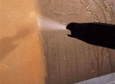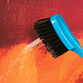 2. Нанесение обезжиривателя. Нанести некоторое количество обезжиривателя на сетку и тщательно распределить образовавшуюся пену с обеих сторон с помощью щетки. При этом загрязнения и жиры эмульгируются и становятся водорастворимыми.