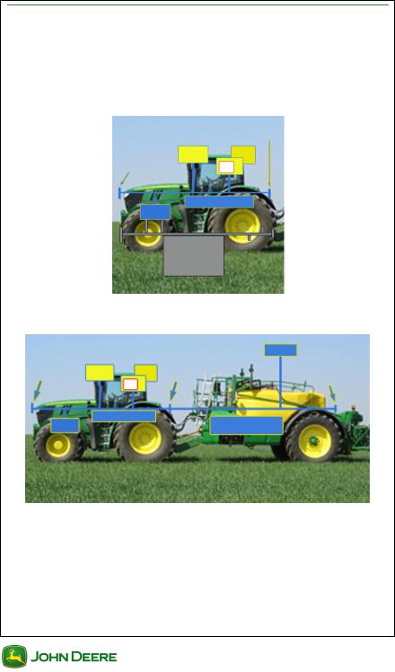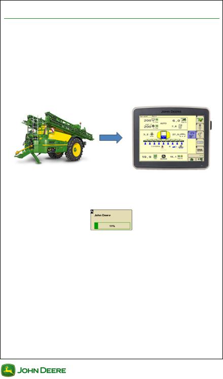 •Агрегат загружает в ВТ собственный интерфейс пользователя, который также называется виртуальным агрегатом (ВА), как показано на следующем рисунке. В этом примере ВА распылителя John Deere отображается на дисплее 2630.