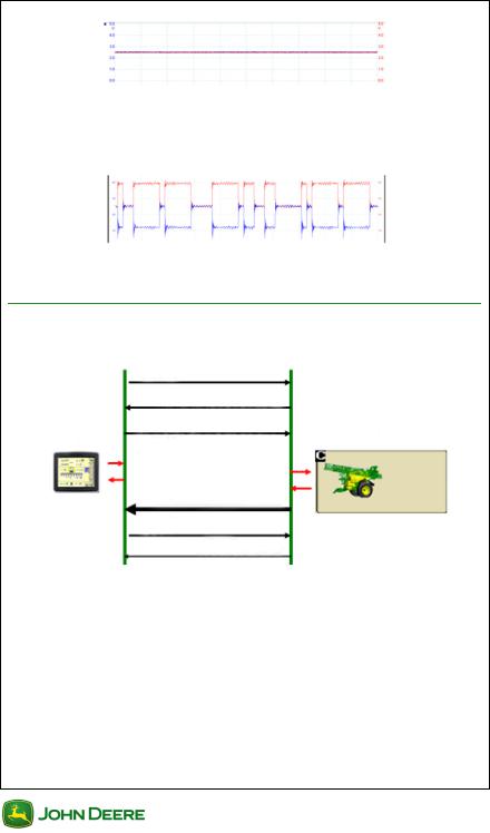 Связь между трактором и агрегатом осуществляется путем передачи сообщений по системе CANBUS. К сообщениям относится загрузка команд графического интерфейса пользователя и значений документации, например нормы внесения.