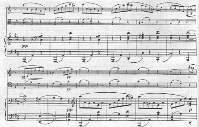 Необыкновенная сила эмоций и глубина чувств, тщательная фактурная и динамическая проработка его в ансамблевых произведениях привела, по сути, к симфонизации жанра. Через насыщенность фактуры, укрупненность образности, способность разворачивать большие звуковые пространства единого настроения Брамс привнес в камерный ансамбль масштабность и концептуальность. Яркая эмоциональная палитра брамсовских ансамблей, бесконечность их содержательных уровней раздвинули пределы понимания семантических возможностей камерной музыки в целом [55, с. 98].