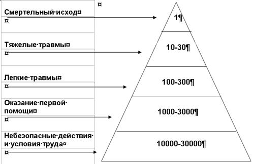 исследования показывают, что одному смертельному случаю предшествуют Рис. 2.6 - Пирамида несчастных случаев