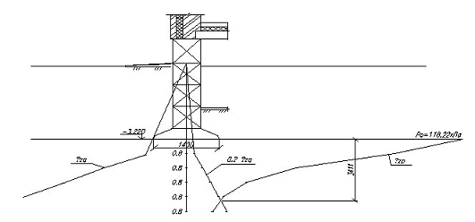 Рисунок 2.2 - Схема распределения вертикальных напряжений, осадка в