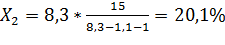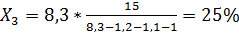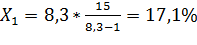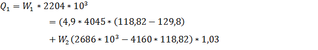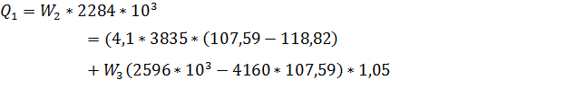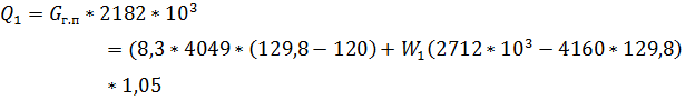 Итогом системы уравнений становится: Gг.п = 1,2 кг/с, W1 = 1 кг/с, W2 = 1,11 кг/с, W3 = 1,21 кг/с.