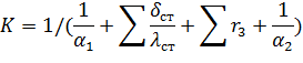 Примем суммарное термическое сопротивление равным термическому сопротивлению стенки λст/δст и накипи λн/δн. Термическое сопротивление со стороны пара учитывать не будем.