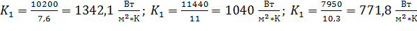 K = 1/(1/α1 + 2,86 ∙ 10-4 + 1/α2) |