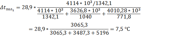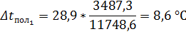 вычисленных значений полезных разностей температур по корпусам Δtпол1