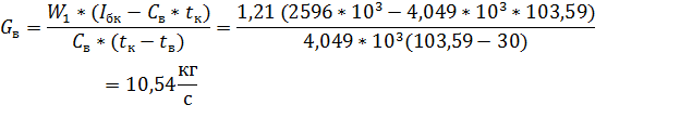 теплообмена. Расчет барометрического конденсатора. Расход охлаждающей воды Gв