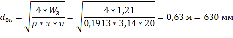 Iбк - энтальпия паров в барометрическом конденсаторе, Дж/кг; Св - удельная теплоемкость воды, Дж/(кг ∙ К); tн - начальная температура охлаждающей воды, °С; tк - конечная температура смеси воды и конденсата, °С. Диаметр барометрического конденсатора определяют