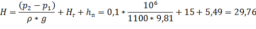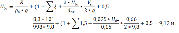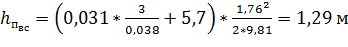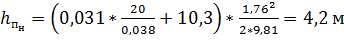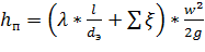 Нагнетательная линия: Выход из трубы: ξ = 1;Нормальный вентиль: ξ = 5,2;Дроссельная заслонка: ξ = 0,9 при α = 15°;Колено под углом 90°: ξ =1,6. Следовательно: