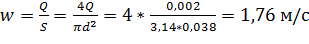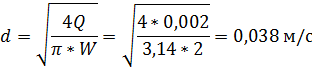 перемещения жидкости одинаковой, равной 2 м/с. Тогда диаметр трубопровода