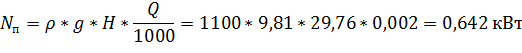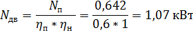 = 0,6 для насосов малой производительности, находим по формуле мощность на валу