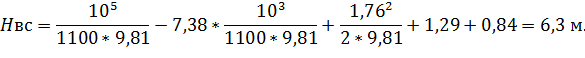 Устанавливаем центробежный насос марки X8/30 со следующими характеристиками: производительность 2,4 ∙ 103 м3/с, напор 30 м, КПД насоса 0,5. Насос снабжен электродвигателем 4A100S2 с номинальной мощностью 4 кВт, КПД 0,83 и частотой вращения вала 48,3 с-1. Рассчитаем предельную высоту всасывания: