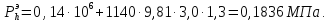 На нижнее днище кроме давления наддува действует ещё и гидростатическое давление, поэтому эксплуатационное давление в этом днище подсчитывается по формуле: