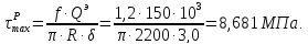 Максимальное расчётное касательное напряжение: