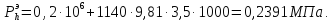 На нижнее днище кроме давления наддува действует ещё и гидростатическое давление, поэтому эксплуатационное давление в этом днище подсчитывается по формуле: