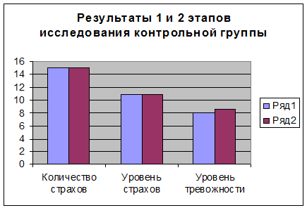 сравнительные результаты 1 и 2 этапов исследования контрольной группы