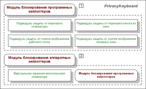PrivacyKeyboard™ имеет в своем составе модули, обеспечивающие