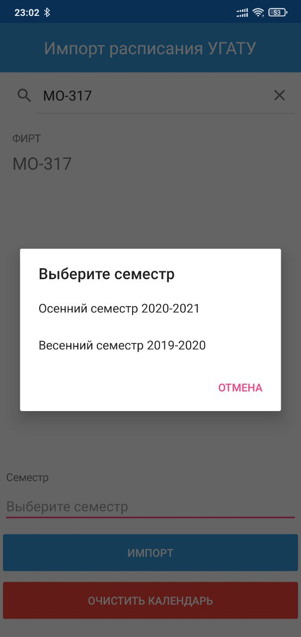 Мобильное приложение «Импорт расписания УГАТУ» − прикладное ПО, предназначенное для импорта расписания занятий в системный календарь устройства.