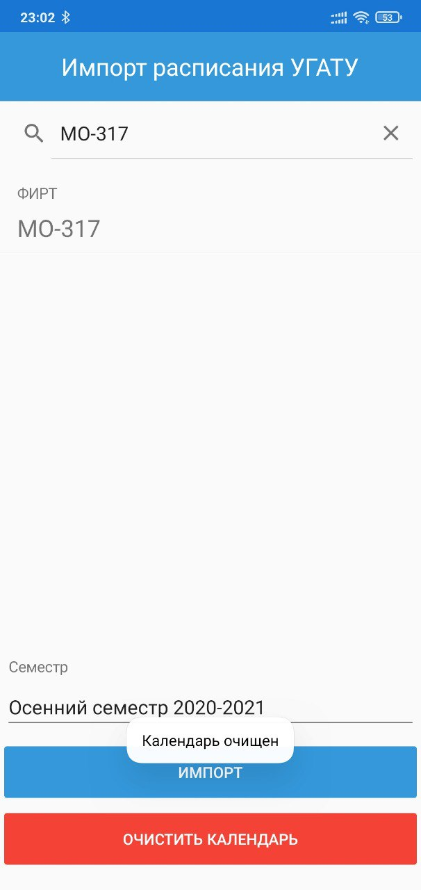 Дождитесь завершения операции. По окончанию на экран будет выведено всплывающее уведомление с текстом «Календарь очищен» (рисунок 3.2.1).