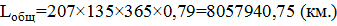 где Lобщ - общий пробег автомобилей, км.
