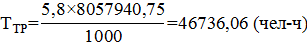 Определим трудоёмкость одного