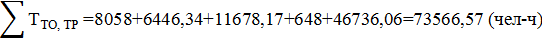 4. Общая суммарная трудоёмкость ТО и ТР, чел-ч. |