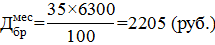 за месяц, руб. Определяется по формуле 40: