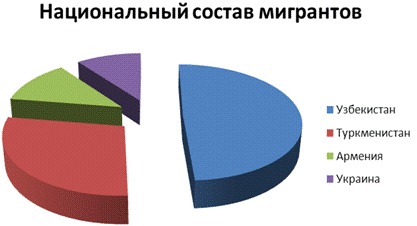 ,4% прироста составляют мигранты из Узбекистана, 23,8% - из Туркменистана, 10,3% - из Армении, 8,7% - из Украины.