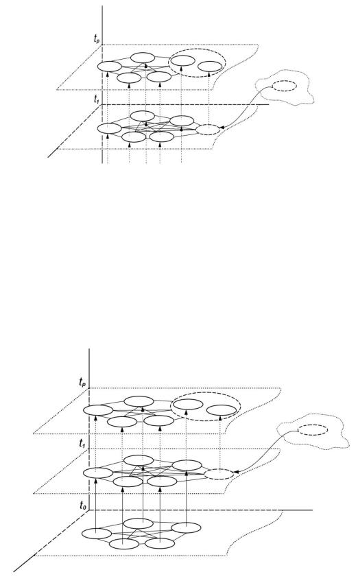 влечет за собой переход в новый временной момент – на новую эволюционную площадку. Если изменение не является значимым для сообщества, то перехода на новый эволюционный этап не происходит. Переходы из одного состояния в другое (например, → ) демонстрируют поведение сетевого сообщества,