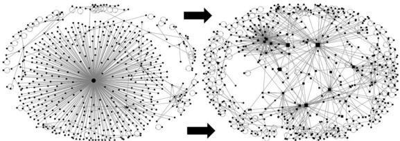 качественно измененных слоев текстуры). Для этого изначально на базе внутренних моделей сети (таких, как, например, вышеописанные , , ), но с учетом открытых данных, предоставляемых сервисами аналитики, строятся кластерные модели, визуализирующие сеть в том или ином аспекте.