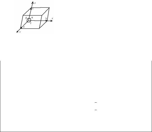 Рисунок 1 Элементарная ячейка ar , b , c - элементарные трансляции соответственно по осям x , y , z ; α – угол лежащий против оси x , β - против оси y ; γ -против оси z .