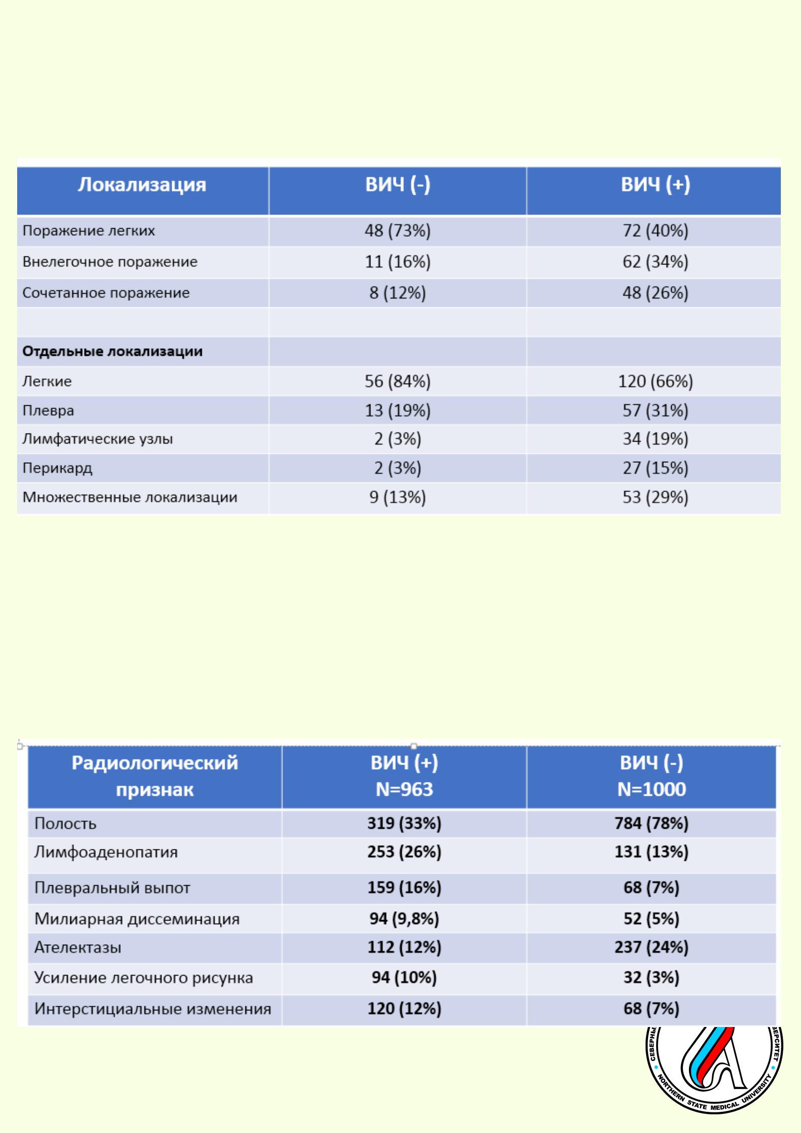 Локализация туберкулеза у пациентов с разным ВИЧстатусом