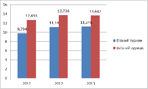 Діаграма 1.1. показує, що кількість туристів, які здійснюють виїзний туризм переважає над в'їзним туризмом зараз на 17,57 %. З кожним роком кількість відвідувачів Південної Кореї зростає. За 2 роки цей зріст відбувся на 13 %. Згідно з очікуваннями рівень туристичних відвідувань Південної Кореї має досягти 29,27 мільйонів до 2016 року, що на 61,6 % перевищує теперішній.