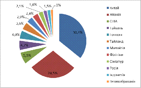 Згідно з даними Діаграми 2.2. бачимо, що більшість туристів, які відвідують Південну Корею походять з сусідніх держав - Китаю, Японії, Тайваню, Тайланду, Малайзії. Велика кількість туристів з США приїжджає до країни.