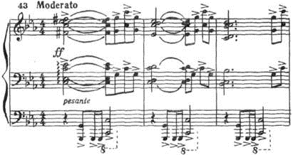 Подобные мелодии - полные страстных, гневных, призывных ораторских интонаций, широко изложенные у всего оркестра- не раз встречаются в музыке композитора.