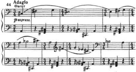 соль-бекар и си-бемоль ). Быстрая смена размеров (3/4, 4/4, затем 3/2)