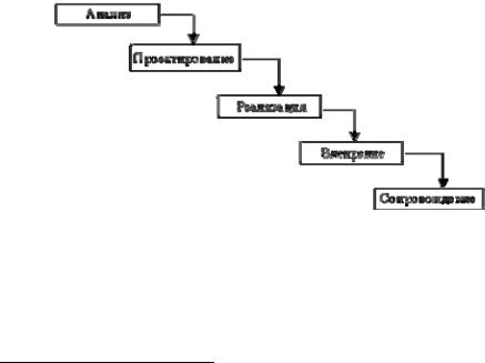 эксплуатацию. Такая схема была заложена в подходе, который известен в литературе, как «каскадный» или «водопадный» 22 (см. рис. 13-1). В этой схеме нет места управлению требованиями, т.к. они статичны, сформулированы в начале проекта и неизменны во времени.