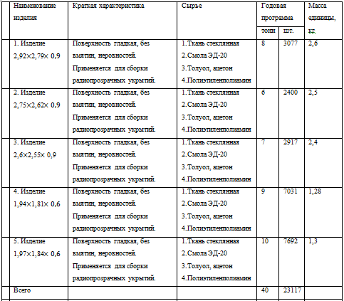 для изготовления для радиопрозрачных укрытий .Ассортимент и объем выпуска
