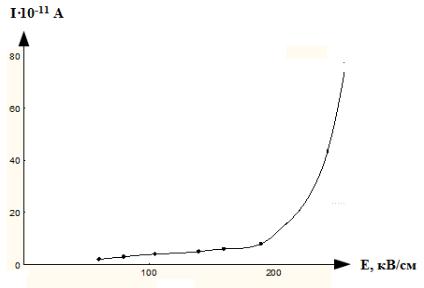 Рис. 4.9. Зависимость тока от напряженности электрического поля для очищенного ксилола