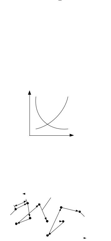 Рис. 5.4. Приближенная схема движения электронов в проводнике, содержащим дефекты, в электрическом поле и температуре более 0 К
