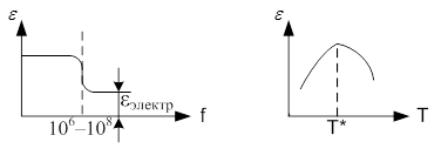 Рис. 4.1. Зависимости относительной диэлектрической проницаемости от частоты электрического поля и