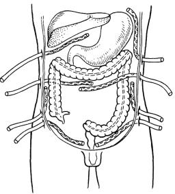 Рис. 6. Вариант дренирования брюшной полости при распространенном перитоните