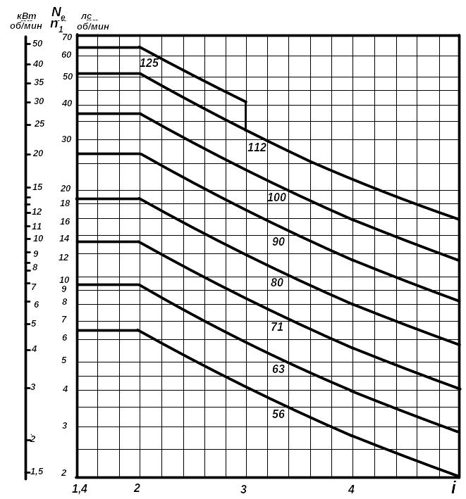 Рис.4.29. Диаграмма выбора редуктора из типоразмерного ряда