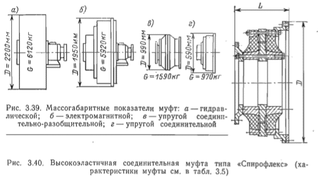 Объединение двигателей и редукторов в один агрегат осуществляется с помощью соединительных муфт. Конструктивно исполнение этого узла может быть реализовано установкой между двигателем и редуктором следующих элементов: только соединительной упругой муфты; упругой и соединительно-разобщительной муфт; одной муфты, выполняющей одновременно обе функции; только эластичной муфты с расположением разобщительной муфты в редукторе.